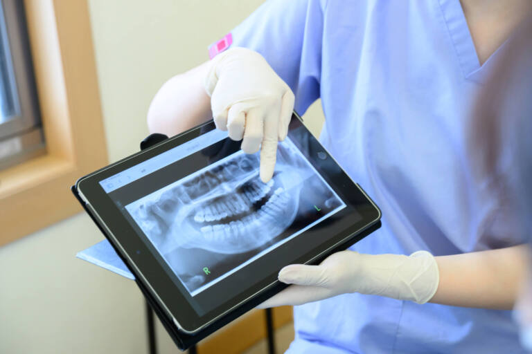 歯の根っこや骨の状態、隠れた虫歯などを確認するために、レントゲン写真を撮ります。