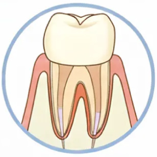 根管治療とは、虫歯が進行すると歯の根にある神経まで痛めてしまいます。そのため歯の根の中にある神経を除去し、神経のあった管の中のバイ菌などの感染部分を除去・消毒してからその空洞を薬剤で封鎖し、歯の根を再度使えるようにするための治療です。